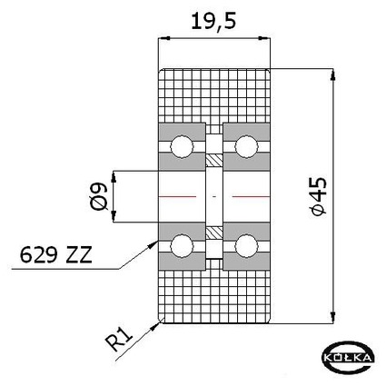 Rolka tworzywowa podwójnie ułożyskowana fi.45mm R-45-19/9
